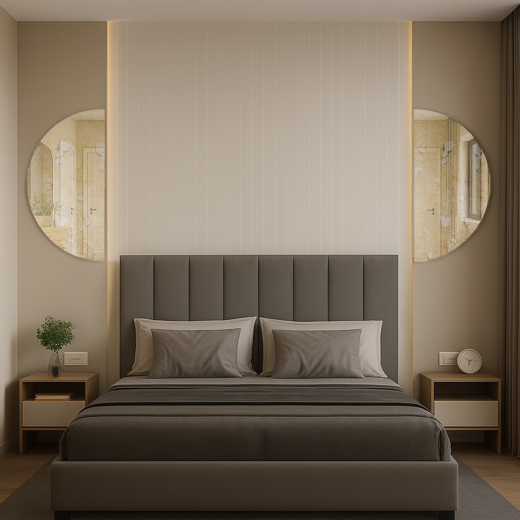 This elegant pair can be displayed together to form a full circle, hung apart for balance, or styled in opposite directions for a unique artistic feature. Perfect for bedrooms, living rooms, hallways, or bathrooms, these mirrors elevate any space with their soft reflective tones and timeless character.