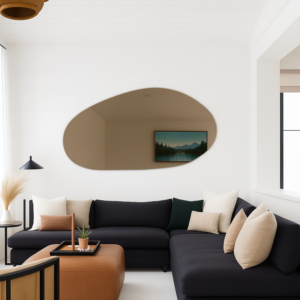 Bring warm, modern character into your home with our Bronze Frameless Irregular Shape Wall Mirror, crafted from premium 6mm Saint-Gobain bronze-tinted mirror glass — admired for its rich tone, clarity, and refined depth of reflection.