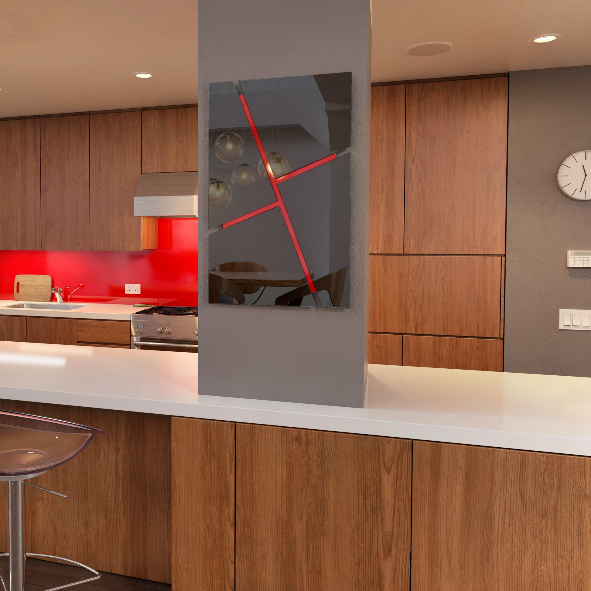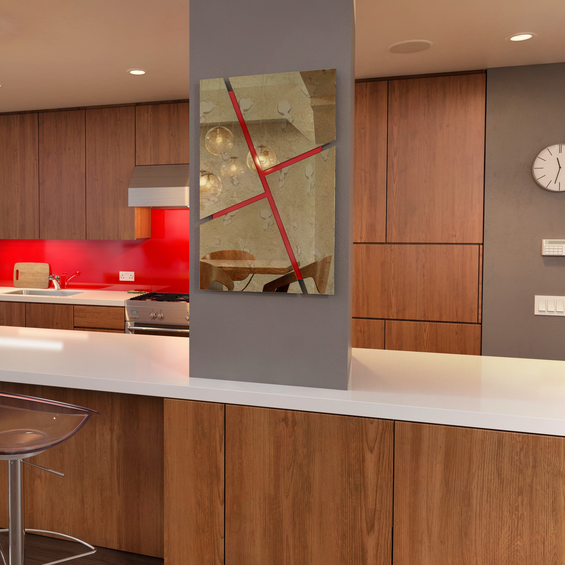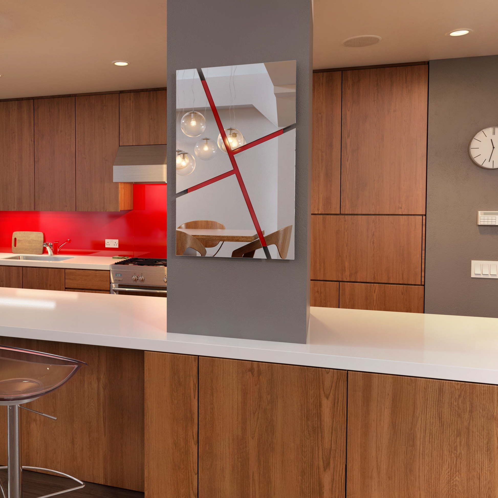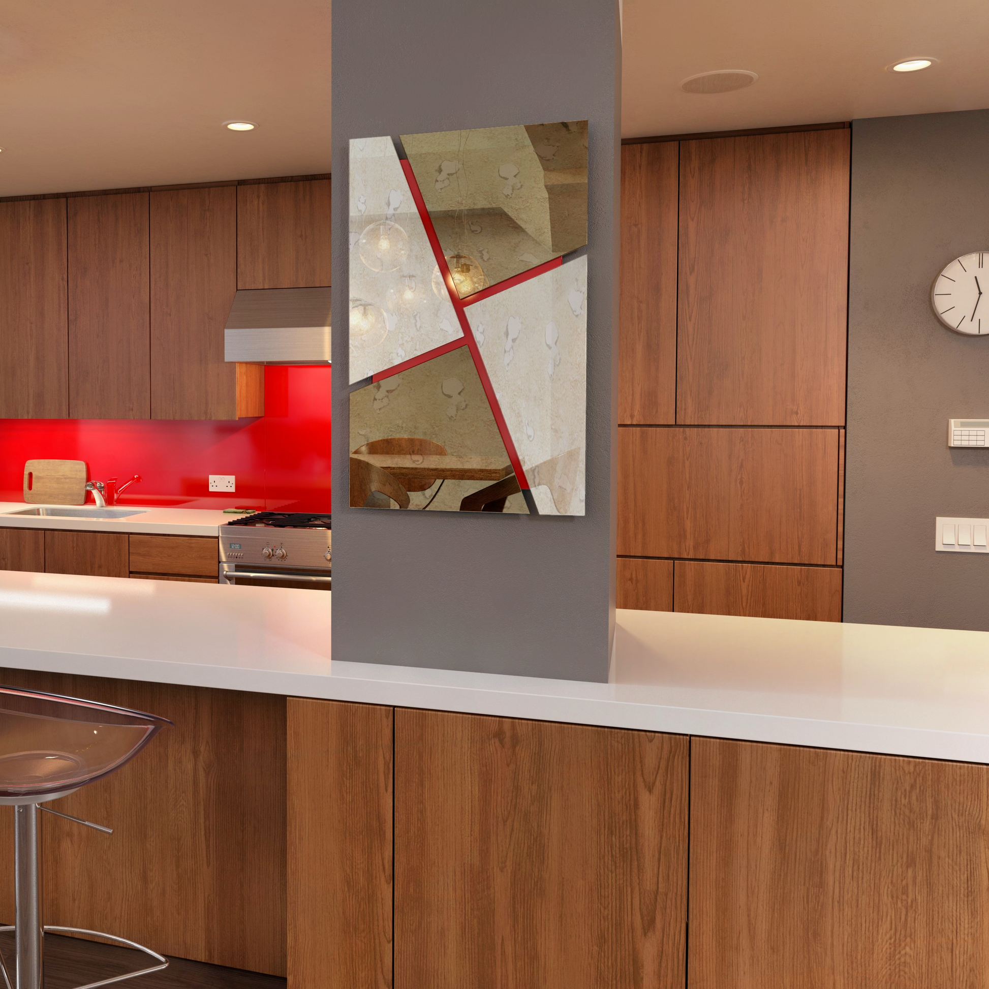 More than just a mirror – this piece is also art for your wall. The striking angled shapes, cut with CNC precision, create a bold geometric pattern that catches the eye. It adds movement and energy to your interior, making it not only practical but also a modern design feature that works beautifully in kitchens, dining spaces, and living areas.
